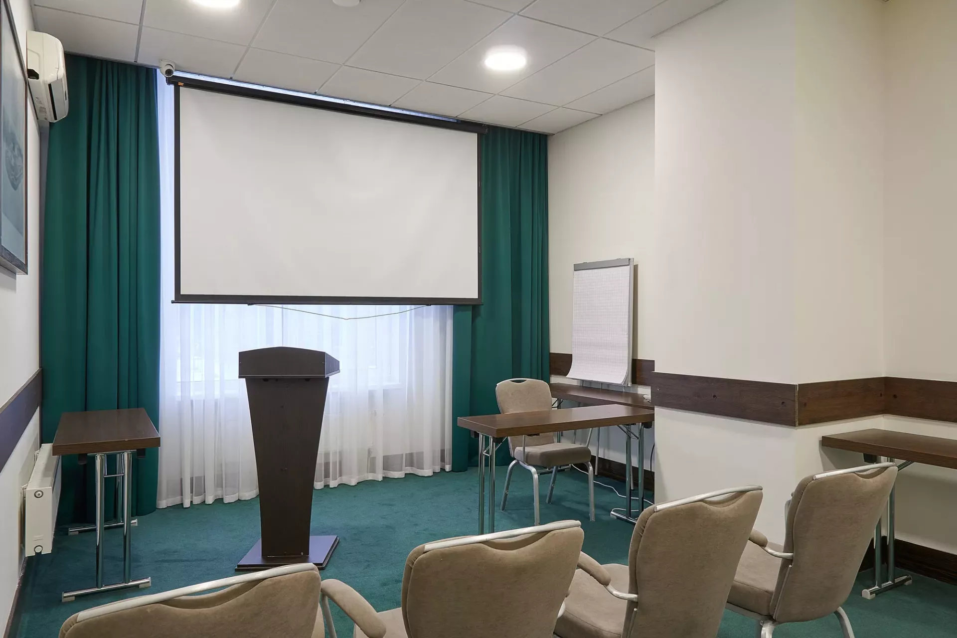 Уютный конференц-зал средних размеров идеально подходит для проведения небольших мероприятий и встреч
